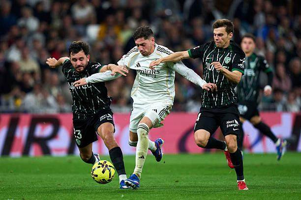 大胜曼城,欧冠取得先手,但皇马的伤病问题依然严重。门迪短暂复出瞬间又闪回医疗室。阿韦洛亚不得已做出最小幅度轮换,只在边路动了几枚棋子。两队上半赛季交手,效力于埃尔切的几名前皇马青训球员给老东家出了大难题。皇马最终凭借贝林厄姆的进球才勉强拿到1分。